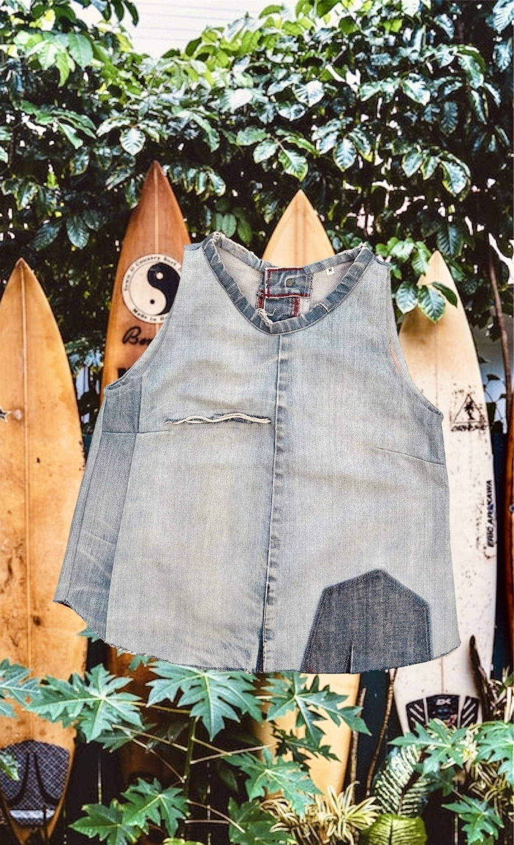 El TOP BARILOCHE se confecciona con jeans usados, los cuales se reciclan para lograr un producto tendencia, sosteniendo el concepto conocido como Slow Fashion/Moda Lenta/Moda Responsable.
